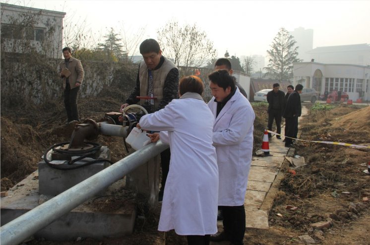 接下來劉總又宣布進行第二項應急演練,只見安全辦張主任急匆匆跑過來向劉總匯報某井區(qū)出水出現(xiàn)異常。檢測中心接到通知立即攜帶相關檢測設備前往始發(fā)井區(qū)。我和田主任立即用濁度儀對該井區(qū)水樣進行初步分析,并另取水樣帶回檢測中心進行進一步檢測分析。與此同時環(huán)保局的同志也帶著專業(yè)設備趕到現(xiàn)場,立即實施現(xiàn)場檢測。經(jīng)分析討論可能是該井區(qū)出沙過多導致出水異常渾濁。把相關數(shù)據(jù)報告給劉總后,劉總指示立即響應排沙除污應急方案,經(jīng)過一段時間的排沙處理之后,該井區(qū)出水逐漸清澈,經(jīng)現(xiàn)場檢測,濁度指標恢復正常,之后該井區(qū)重新啟動,恢復出水。