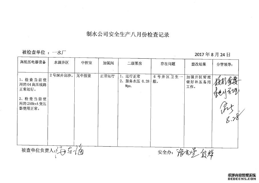 一水廠2017年8月安全生產(chǎn)檢查記錄