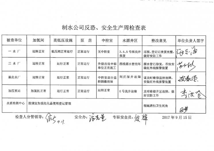 制水公司2017年9月反恐、安全生產(chǎn)檢查