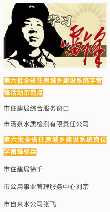 近日,省住建廳下發(fā)《關(guān)于命名第六批全省住房城鄉(xiāng)建設(shè)系統(tǒng)學(xué)雷鋒活動(dòng)示范點(diǎn)和崗位學(xué)雷鋒標(biāo)兵的通知》,湯泉水質(zhì)檢測有限責(zé)任公司榮獲“全省住房城鄉(xiāng)建設(shè)系統(tǒng)學(xué)雷鋒活動(dòng)示范點(diǎn)”稱號(hào),公司員工張飛榮獲“學(xué)雷鋒標(biāo)兵”稱號(hào)。
