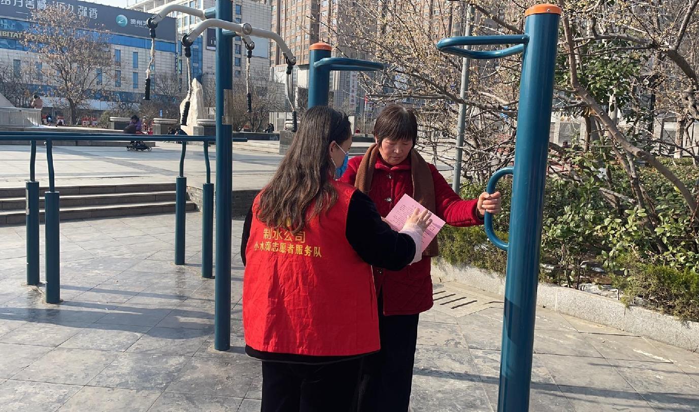 活動現(xiàn)場,志愿者們在人流量較大的活動健身區(qū)域通過拉家常的方式與群眾拉近距離,從身邊小事提及,突出宣傳黨的二十大精神,普及憲法和民法典條文,同時(shí)講解冬季用水設(shè)施防凍害措施,通過熱情交流分享,逐漸與周邊群眾打成了一片,收到了良好的宣傳效果。